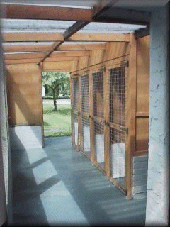 The cattery at 4Paws-UK is situated away from the kennels and overlooks the neighbouring farmland. The cats have an inside and outside area accessible through a cat flap, where the cats can sit out on raised shelving to watch the local bird life if they wish.